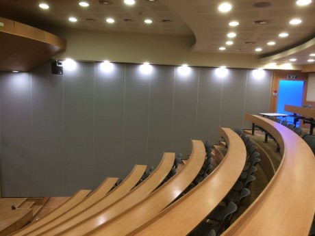 ביצוע שתי מחיצות אקוסטיות ניידות אשר מחלקות מרכז כנסים לשלושה אולמות.